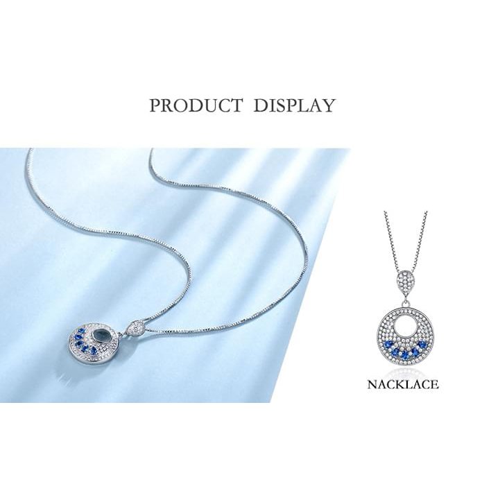 925 Sterling Silver Sapphire and White Diamond Pendant Earrings Gift Set For Women