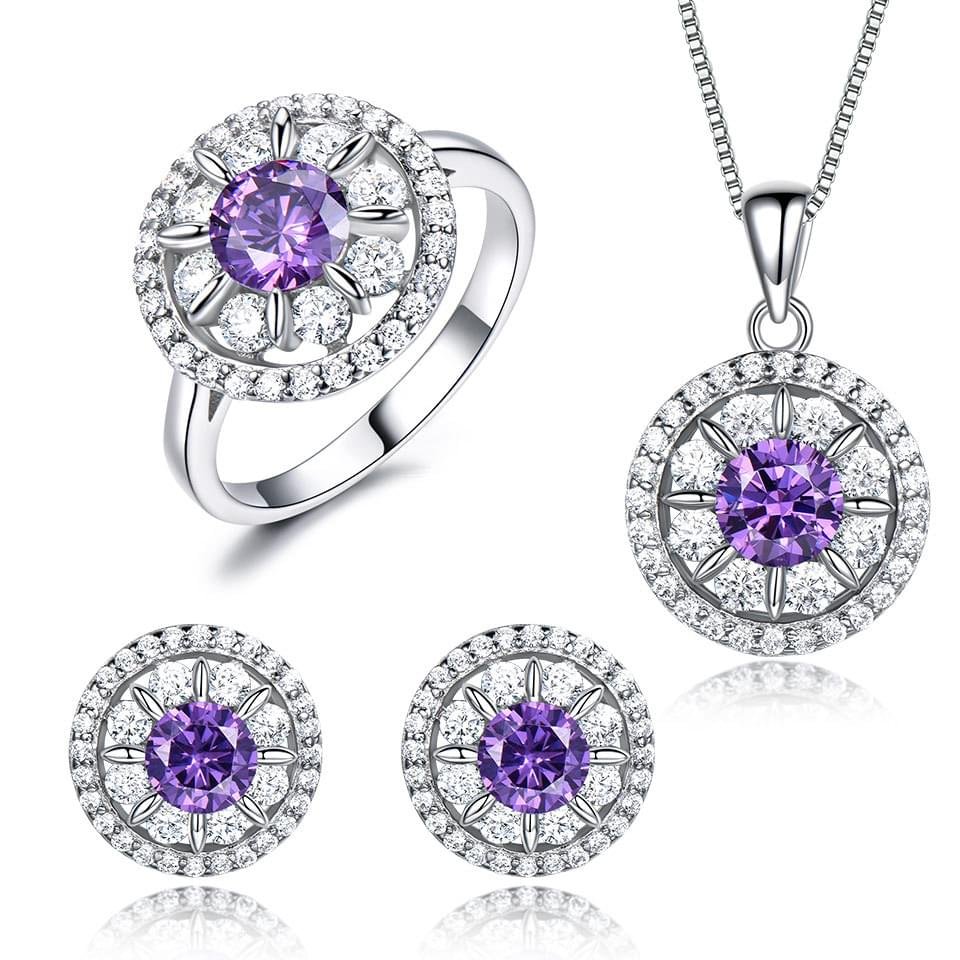 925 Sterling Silver aurora crystal stones Pendant Bracelet Ring Gift Set For Women