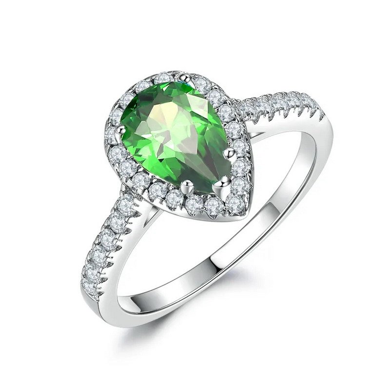 Colored Gemstones Sterling Silver Rhodium Plated Female Ring With Nice CZ Stones
