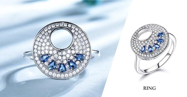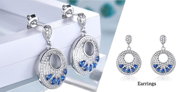 925 Sterling Silver Sapphire and White Diamond Pendant Earrings Ring Gift Set For Women