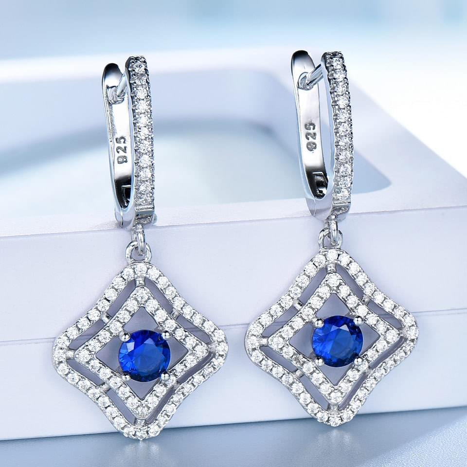 925 Sterling Silver Sapphire and White Diamond Pendant Earrings Gift Set For Women