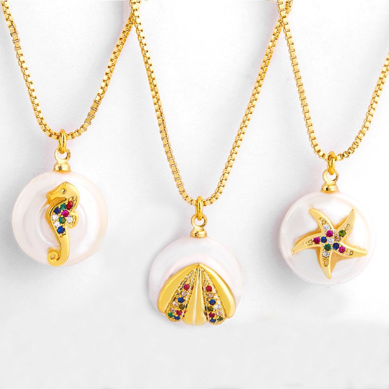 Leaves Shaped Micro Pave Baroque Pearl Brass Jewelry Necklace