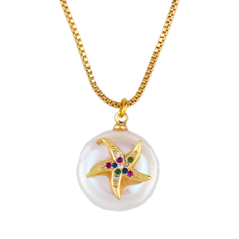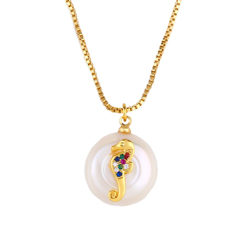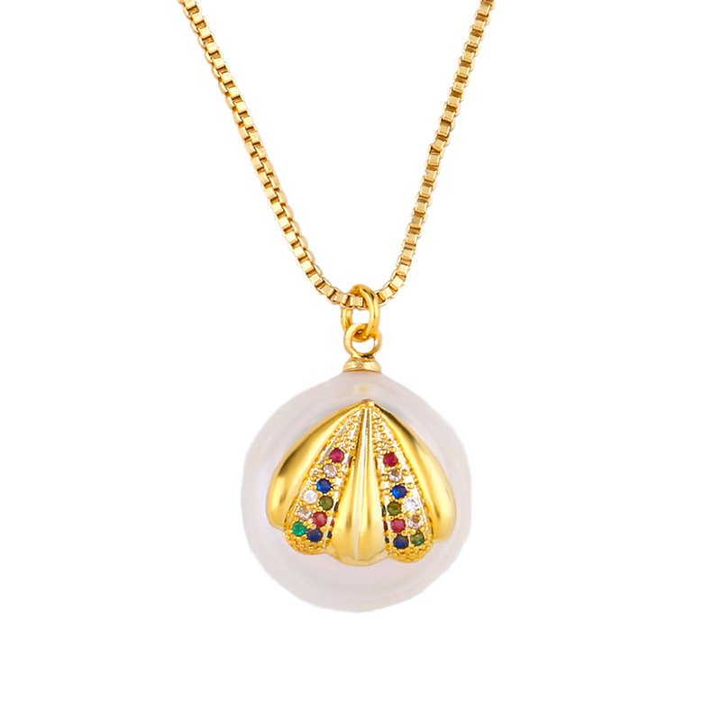 Leaves Shaped Micro Pave Baroque Pearl Brass Jewelry Necklace-VENUSACC