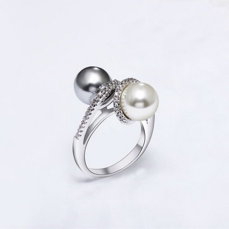925 Sterling Silver Classic Pearls And Cubic Zirconia Stones Ring Rhodium Plated