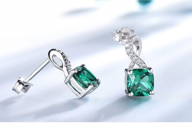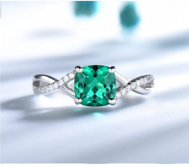 Silver 925 Emerald and White Diamond Pendant Earrings Ring Gift Set For Women