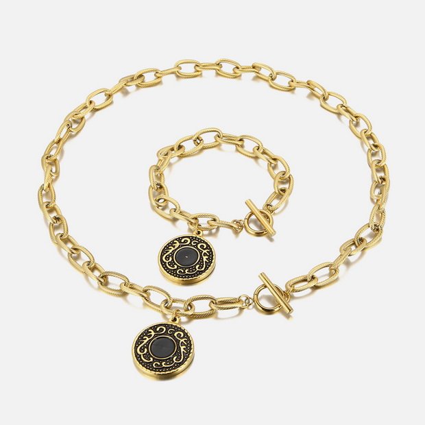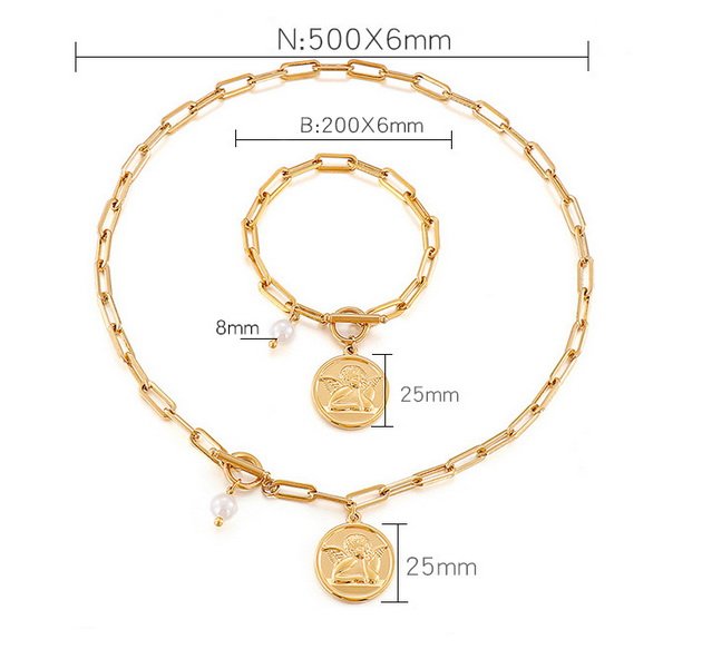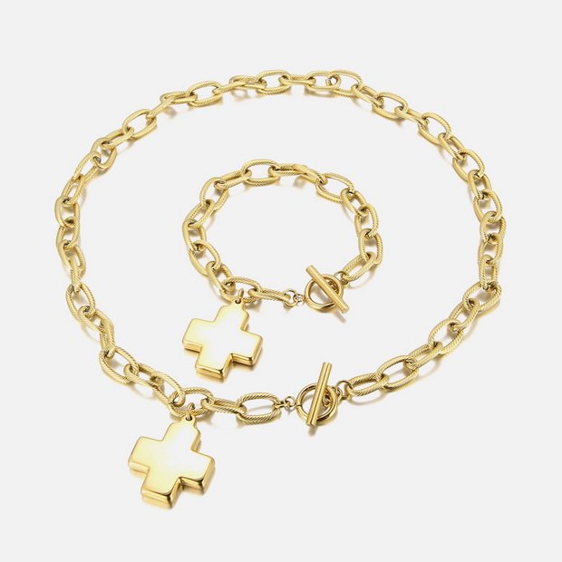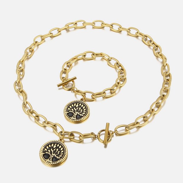 Stainless Steel Neckalce And Bracelet Chain Set For ladies