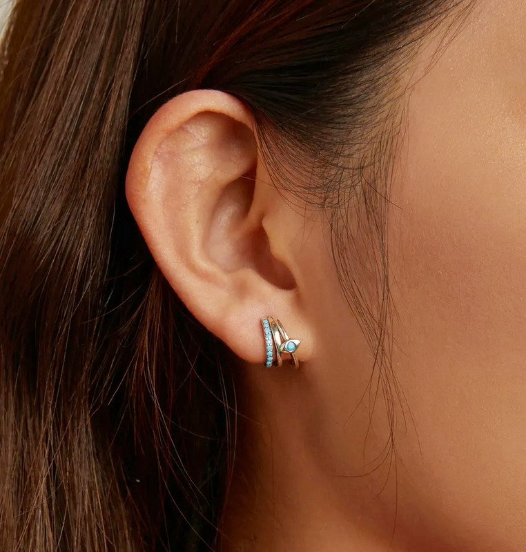 The Devil Drop Sterling Silver Turquoise Stones Hoop Earrings