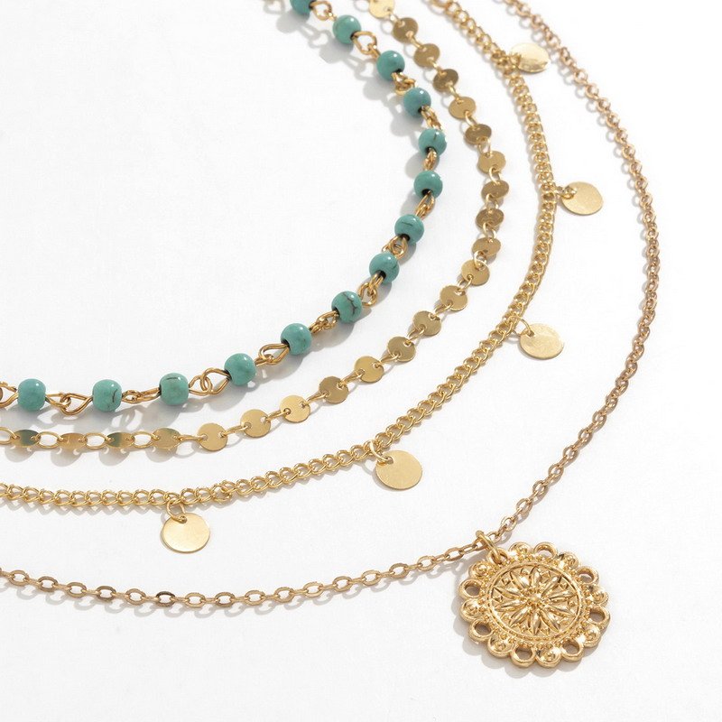 Turquoise Coin Choker Layered Necklace-VENUSACC