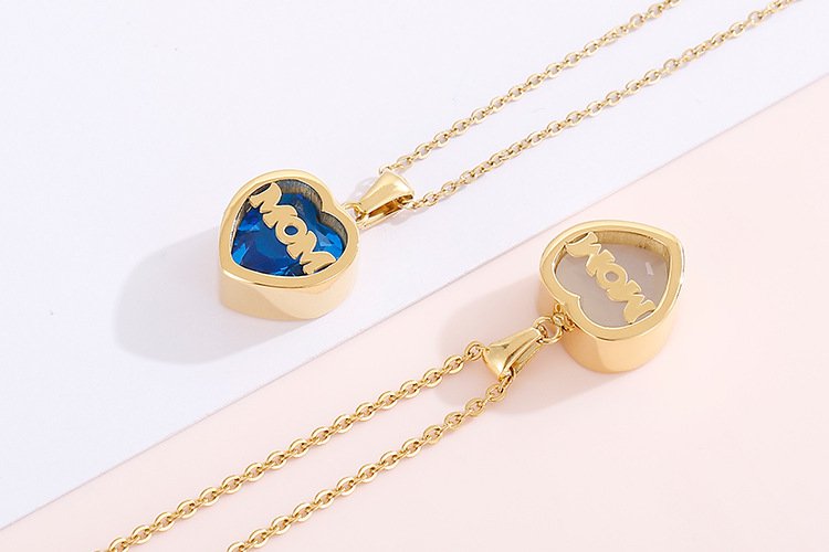 Two-tone Stainless Steel Heart Necklace With CZ stones For Ladies