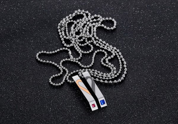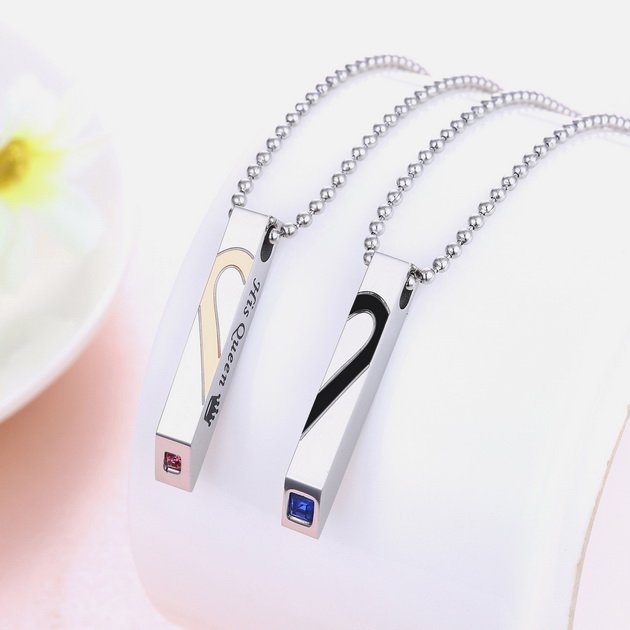 Two-tone Stainless Steel Heart Necklace With CZ stones For Couples