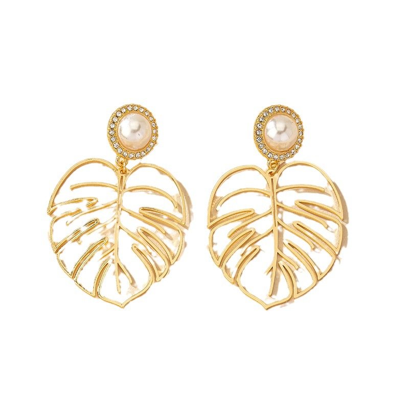 Venusacc Fashion Leaf Pearl Earrings-VENUSACC